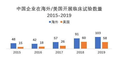2015-2019年间,我国企业在海外开展的临床试验呈增长趋势,企业走出去参与全球化竞争的意愿越来越强。此外,还有企业新药项目直接选择在国外开展临床。如天境生物自主创新的GM-CSF靶点药物2019年率先在美国开展一期临床试验,在获得临床数据后,再回中国申报。我国企业在海外临床试验领域活跃性增强。